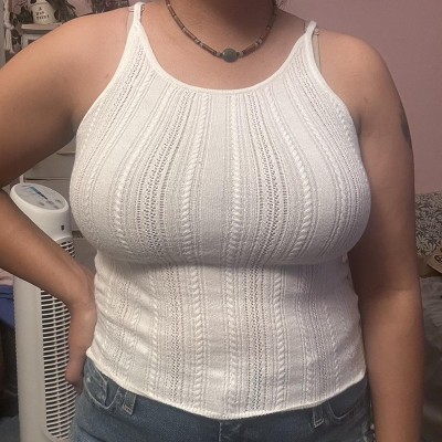 [This review was collected as part of a promotion.] This wild fable tank top is a soft sweater material. It is pretty light and thin though. The tank has a high neckline and thin straps. The length is more cropped than mid length, which isn’t too flattering on my body type. I’m normally a size large and ordered the large. It fits true to size. I think for what it is, it is a bit overpriced and feels flimsy. This one’s not for me. I received an incentive to write this review.