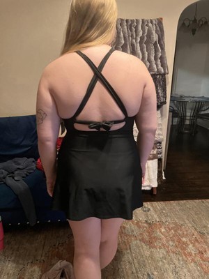 Embrace sunny days in chic style with this High-Neck Swim Dress from Shade & Shore™. The high-neck swim dress is crafted from nylon-spandex blend tricot fabric with partial lining for comfortable wear. The crisscross back-tie closure completes the design with an adjustable fit, while the built-in shorts and bra offer added coverage you can count on. Pair it with a straw tote and a sun hat for a stylish, beach-ready ensemble.