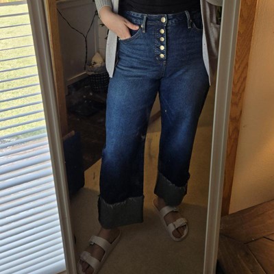 [This review was collected as part of a promotion.] I am obsessed with these dark denim jeans that have a high waist, a slight stretch and a high cuff at the lake. They are so incredibly comfortable. They are a wide leg fit, and I really appreciate the attention to detail in the overall aesthetic of the gene I was really excited to try these on. I think they’re gonna look really great with wedge sandals or a great pair of flip-flops for a more casual look. I plan on pairing these with a casual sweater to head out on the Town . I am wearing a size 18, which is my typical size and overall these fit really well and true to size. I received an incentive to write this review.
