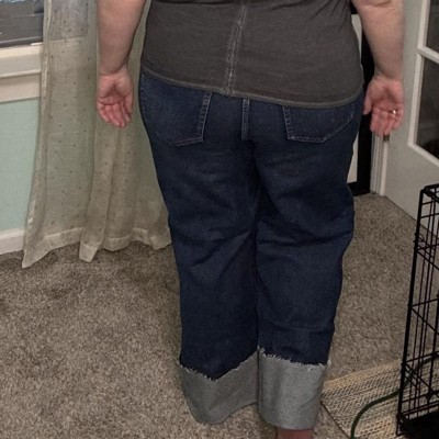 [This review was collected as part of a promotion.] I am obsessed with these dark denim jeans that have a high waist, a slight stretch and a high cuff at the lake. They are so incredibly comfortable. They are a wide leg fit, and I really appreciate the attention to detail in the overall aesthetic of the gene I was really excited to try these on. I think they’re gonna look really great with wedge sandals or a great pair of flip-flops for a more casual look. I plan on pairing these with a casual sweater to head out on the Town . I am wearing a size 18, which is my typical size and overall these fit really well and true to size. I received an incentive to write this review.