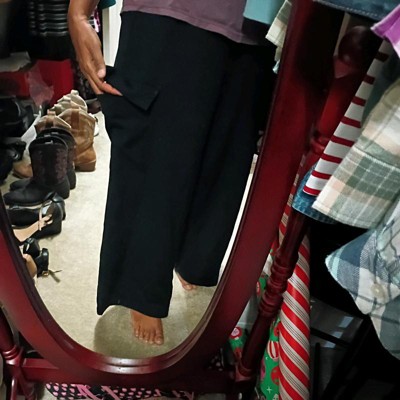 One of the best things I’ve purchased from Target in a LONG time. These can be dressed up a bit or worn as PJs. They’re so comfy. I’m 5’10” and 240lbs with most of my weight in my lower belly and these are a dream. I got a 2x which is a little oversized but it drapes so nicely. The weight is perfect so allow for a flowy drape and hang of the pants and the length is amazing too as a taller woman. I now wish I could get these just without the cargo pocket. If you’re shorter you could get them hemmed.