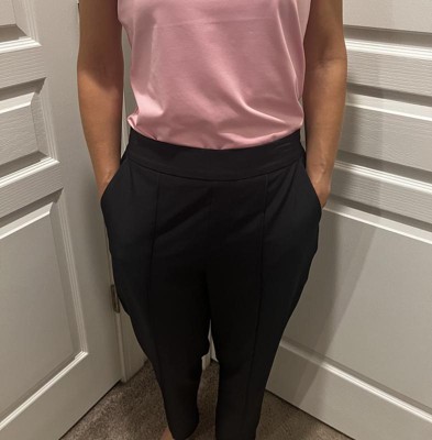 I have been waiting for these to go online, I bought them in store and now I think I need to order the Navy. I purchased for travel, but they’re so great that I plan to wear them for work as well. I love the pin tuck in the front. And the flat front and the side zipper cinches you at the waist. I am 5.4” and they hit right at my ankle.