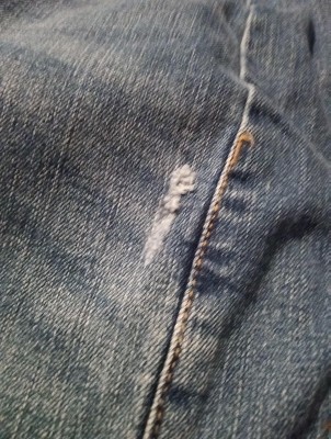 Repurchased because my last pair got a hole from normal wear. Jeans fit perfect, but the dye job looks terrible. It’s too dark and splotchy over the zipper and right side of the waistband. I’m not wearing this in public. It looks ridiculous.