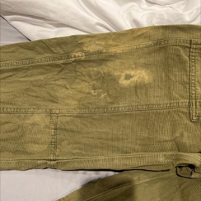 I bought these in store and immediately stained them beyond hope. Ordered a 2nd pair because they are soooo cute, so comfy, the perfect length and go with everything! My new favorite pants!!