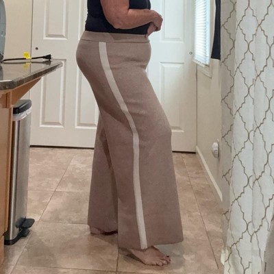 Elevate your casual wardrobe with these High-Rise Wide-Leg Pants from Ava & Viv™. These jacquard-knit sweatpants are crafted from a lightweight fabric blend of recycled polyester, viscose and spandex for comfortable, flexible wear. A high-rise fit creates a flattering silhouette, while the full elastic waistband ensures an easy, secure fit. The wide-leg design lends a relaxed feel, and the taupe shade pairs easily with any top.