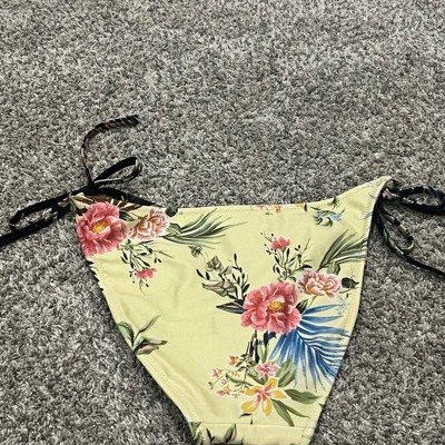 [This review was collected as part of a promotion.] These are a size medium and fit true to size. I love the option of tie strings on the side so I can tailor it to my exact size. These are reversible which is an amazing concept because it’s two suits in one. One has a background of black and the other is yellow. There id a matching top that you can purchase separately.