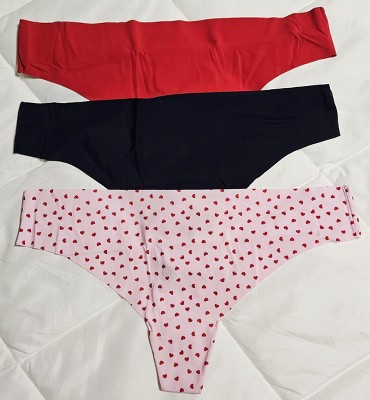 Women's Invisible Edge Thong 3pk - Wild Fable™ Navy/Pink Hearts/Red XL