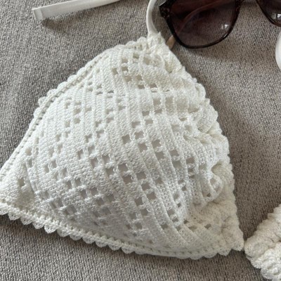 [This review was collected as part of a promotion.] I am 5’4” and weigh 125 pounds. My bust size is a 34-36B depending on the swimsuit. This swimsuit top was absolutely adorable. I paired it with a cream colored skort, and it was an absolutely perfect set! I don’t always love swimsuits that I need to tie as I feel that they can become loose and bothersome. However, this top was soft and didn’t feel as though it was pulling on my neck. I loved the crocheted pattern and feel as though it fit quite well! I would definitely recommend this top. I received an incentive to write this review.