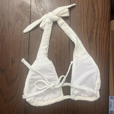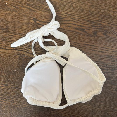 [This review was collected as part of a promotion.] This is a very nice quality bikini top. I’m 5’9” and 135lbs with a 34C cup currently and wearing a size medium. I love how thick the ties are, they give the top good support. The quality of this bikini is great. The pads are removable which makes easy for washing. This is a great bikini to wear on your honeymoon, it screams bridal vibes! The price is very affordable. You could pair this top with the matching bottoms or any color bottoms. I received an incentive to write this review.