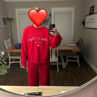 This sweatshirt is the perfect one for the holidays and I love the heavy cotton 64%,embroidery is adorable. Looks great with matching lounge pants.