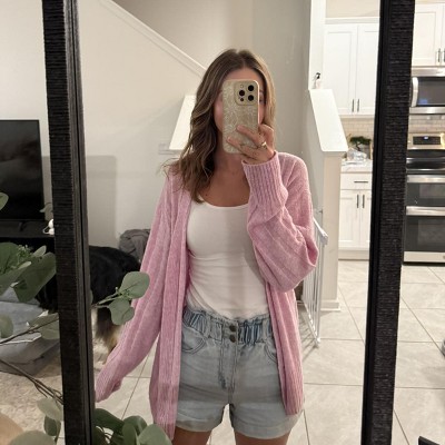 I personally LOVE this cardigan!! I wore it a couple times now and got so many compliments! It’s the softest one I’ve ever found, it keeps you warm, and it’s SO cute. I see so many reviews about how it is awful quality and only lasts one wear but I completely disagree. I washed mine on a gentle cycle in a laundry bag and wore it twice now and it looks just like new! I have one in pink and one in grey. I will say that if you’re wearing black pants, the grey sweater leaves a good bit of lint on your pants. But overall this is my new favorite sweater!!