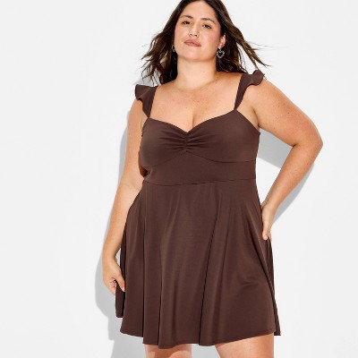 Women's Sleeveless Lace Slip Mini A-Line Dress - Wild Fable™ Brown XXL