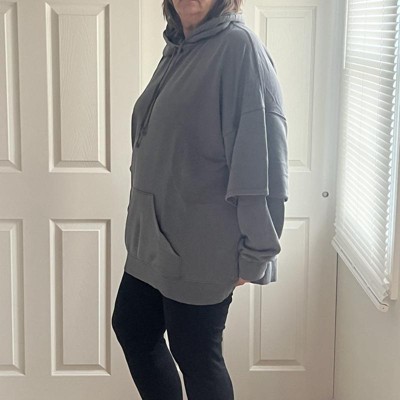 Women's Layered Sleeve Hooded Sweatshirt - Wild Fable™ Black Wash 2X: Loose Fit, Kangaroo Pocket, French Terry