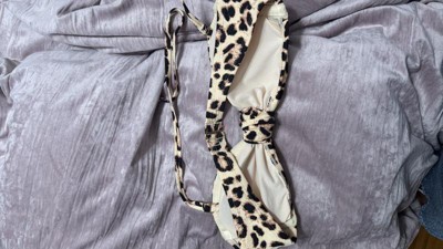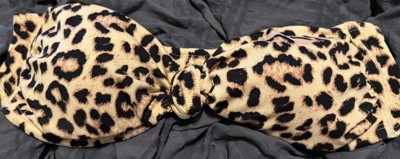 Give your swimwear closet a roaring update with this Leopard Print Bandeau Bikini Top from Shade & Shore™. Made from soft and stretchy ribbed fabric with full lining for flexibility and comfort, this bandeau bikini top boasts a leopard pattern with a knotted front for an on-trend look. Removable cups offer customizable coverage, and the back hook closure provides a snug fit. Plus, removable straps let you change up the look in an instant.