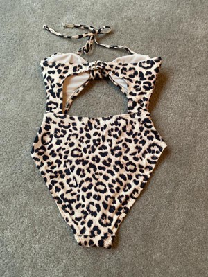 Add a trendsetting style to your swimwear with the Leopard Print Cut Out Regular Leg Medium Coverage One-Piece Swimsuit from Shade & Shore™. This printed swimsuit features allover leopard print with front and back cutouts and a knot at the center of the busts for a stunning look. It is tailored from recycled polyester fabric with spandex to give you the right flexibility and comfort for diving, sunbathing and other beach or poolside activities. Showcasing a regular-leg design, this swimsuit helps provide medium coverage and has a halter-neck design with a back tie for a nice fit. Plus, it comes with removable cups for customizable coverage.