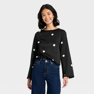 Add chic elegance to your dressier ensembles with this Long-Sleeve Embellished Button-Down Shirt from A New Day™. This long-sleeve shirt is made from midweight cotton poplin fabric for breathable comfort and features a semi-opaque design. The collared neckline and single cuffs offer touches of classic style, and the embellished button-down front completes the chic look.