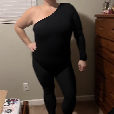 One shoulder black body suit