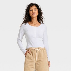 Women's Long Sleeve Pointelle Henley Shirt - Universal Thread™ - 1 of 3