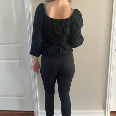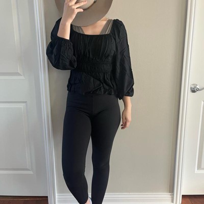 Upgrade your casualwear wardrobe with this Long-Sleeve Ruched Top from A New Day™. The long-sleeve ruched top is crafted from rayon woven fabric in a regular fit for comfortable wear. It's fashioned with a cool square neckline and elastic detailing on the waist for a flattering fit, and the below-waist length allows easy layering.