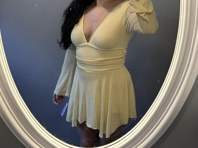 This romper is very cute but I don’t like that the flowy part is very sheer! The shorts underneath are super short almost like booty shorts plus the super sheer flowy part is not a good combo if you’re trying to wear this out in public. Someone asked if it had a zipper and was told no but it actually does have a zipper and fabric is stretchy.