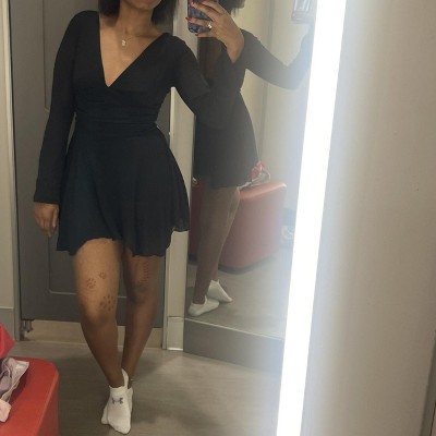 Knit romper from Wild Fable™ with flared long sleeves and a ruched waist with asymmetrical above-knee length. Designed with a plunging V-neck front and a plunging square-neck back with trailing string ties. Crafted from lightweight recycled polyester with lining for comfortable all-day wear.