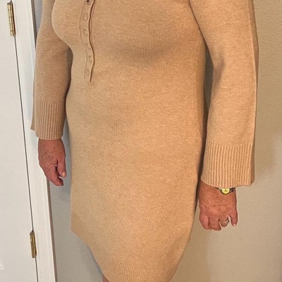 Women's Long Sleeve Sweater Dress - A New Day™ Light Heather Brown 2X