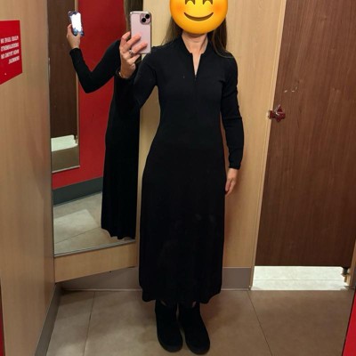 [This review was collected as part of a promotion.] I was surprised by how much I liked this maxi dress by Future Collective. It is described as a sweater dress, however the material is a very fine knit. It’s not what I would normally think of as a sweater dress with the thicker knit. The material is also a smidge see through when you hold it up to the light. I didn’t see any issues while wearing but something to keep in mind. I love a dress with long sleeves and the zipper is nice so you can adjust the neckline to your preference. I am wearing a size medium, which is my normal size in tops and felt it fit true to size. Overall very comfortable and looks great! I received an incentive to write this review.