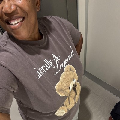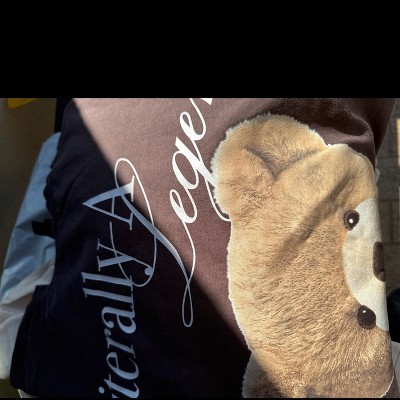 The teddy bear short is the cutest. I love it also because it doesn't look little kiddish lol....I don't look like I'm wearing my daughter's shirt 😅...fit is roomy, I'm usually an XL, in this the XL looked like a pajama shirt so I kept the L instead. I will pair this with everything I can, so in love!!!