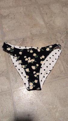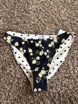 Super cute bikini bottoms! Absolutely love the double (but different!) sided prints. Perfect for vacation and providing different looks. These are low rise and very cheeky but still provide good coverage. I felt like I could move around and play games with my son on the beach without worrying about showing a bit too much. Flowers on one side, polkadot on the other. Love these!