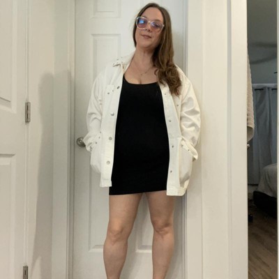 [This review was collected as part of a promotion.] This is the womens luxe 4-way stretch slip dress by Auden. I got this in black in a size XS. I am 5’3” 115 pounds 32A and I normally wear an XS but this was a bit too short on me so I would probably size up. The stretch spandex was really nice not to tight but clings to you and silky smooth. The straps are adjustable which is great so you can move the neckline up or down by easily lengthening or shortening the straps. I received an incentive to write this review.