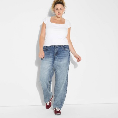 Mid-rise flare curvy jeans from Wild Fable™. Crafted from midweight cotton denim fabric with a touch of spandex for breathable all-day wear that moves with you. Tailored in a flared-leg silhouette with a curvy fit. Belt-loop waistband with a zip fly and button fastening offers a secure fit. Classic five-pocket design completes the look with space for stashing small essentials.