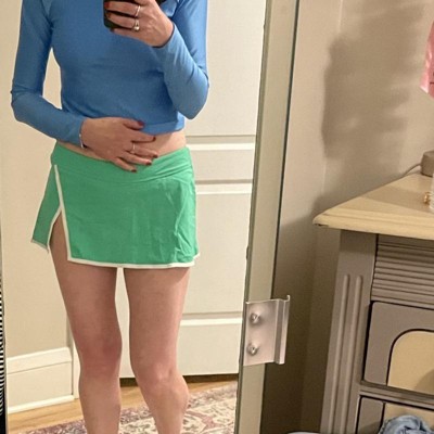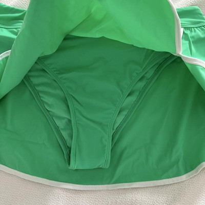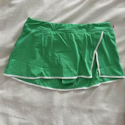 Women's Mid-Rise Side Slit Swim Skort - Wild Fable™ Green/White S: Nylon Spandex, Pull-On, Full Lining