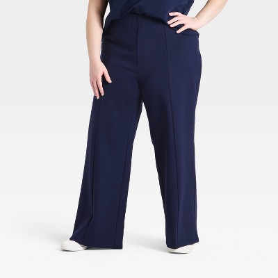 Women's Mid-Rise Wide Leg French Terry Pants - A New Day™ Navy 1X