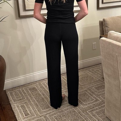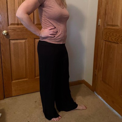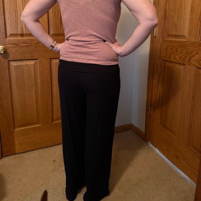 [This review was collected as part of a promotion.] Black pants are an essential in my wardrobe and I can never have too many pairs. These have a fold over waistband and wider legs that flow away from the body. The size XL seems large to me as I normally wear an XL and these were not as fitted at the waist as I would like and they were definitely too long. For reference, I am 5’6”.