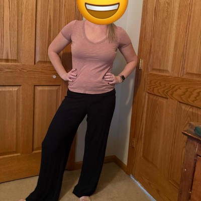 [This review was collected as part of a promotion.] These are the women’s mid rise wide leg cozy pull on pants. I got these in an XS, I am 5’3” 115 pounds I normally wear an XS or size 2 pants. I love how these fit. The fabric is a lighter weight ribbed knit. They are super stretchy and they have a super cute fold over mid rise waistband which allows them to lay flat and not cut in at the waist. They are a little long on me but I have shorter legs. These are perfect for going out to casual functions as they look neat as opposed to sweat pants that may be too casual. These are really cute and so comfortable, I really like the wider legs.