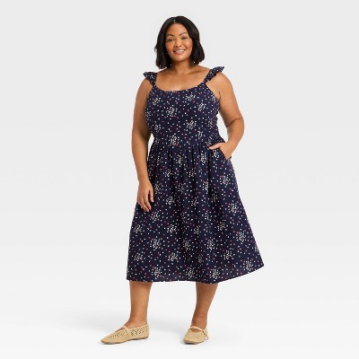 Women's Midi A-Line Dress - Ava & Viv™ Navy Blue 4X