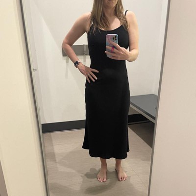 Create a standout look for brunches or nights out with this Midi Shift Dress from A New Day™. This sleeveless shift dress is made from midweight knit fabric with added spandex for all-day comfort, while the adjustable spaghetti straps provide a snug fit. Showcasing a scoop neckline and U-back for a flattering look, you can pair this midi shift dress with your choice of footwear and accessories to step out in stunning style.
