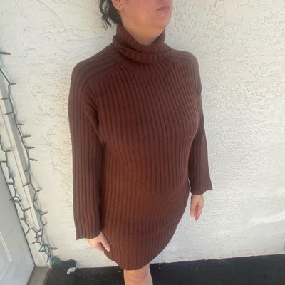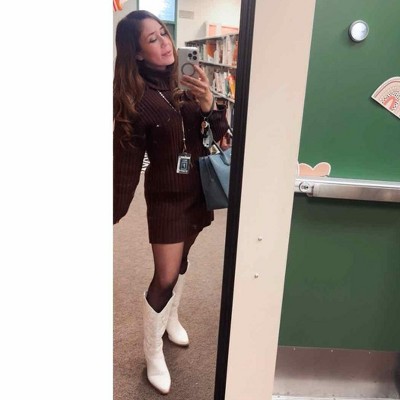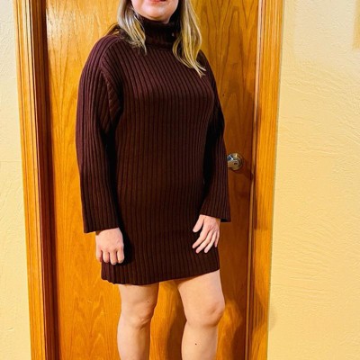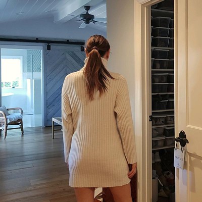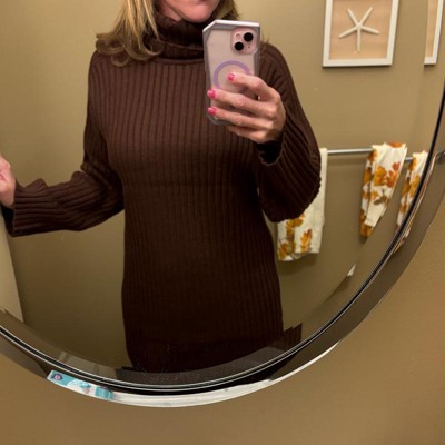 [This review was collected as part of a promotion.] I picked this sweater dress up at Target in size small, which is my normal size and it fit true to size and not too tight. I like that the material is soft, thick, and cozy without feeling too heavy. The ribbed texture gives it a flattering shape, and the turtleneck adds the perfect touch for fall and winter. I love the length — short enough to wear with tall boots but still appropriate for everyday wear. I can throw on a belt or denim jacket and wear it to work.