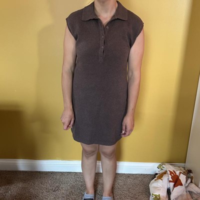 [This review was collected as part of a promotion.] This size XS sleeveless mini sweater dress fits my 5’3 smaller frame pretty well! My measurements at the time of this review are C31 W27 H34 and weight around 120lbs. The material was soft and very comfortable. It is a bit heavy, it may be warm for a hot summer day. I liked the buttons, although small, they were easy to open and close. The collar is a cute addition, making it easy to dress up or down. The brown color reminds me of fall and would look cute paired with a jean jacket! I received an incentive to write this review.