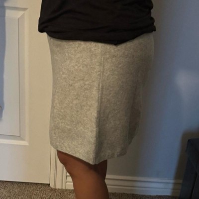 [This review was collected as part of a promotion.] Love this sweater skirt. The material is very stretchy and forgiving. It’s warm and soft complimenting all body types. This would look great in the fall with a shirt or winter time tuck a cute sweater in with it. This skirt will look good with low booties or even a tall pair of boots. The quality is good and very affordable. I’m 5’9” and 130lbs wearing a size small. I received an incentive to write this review.