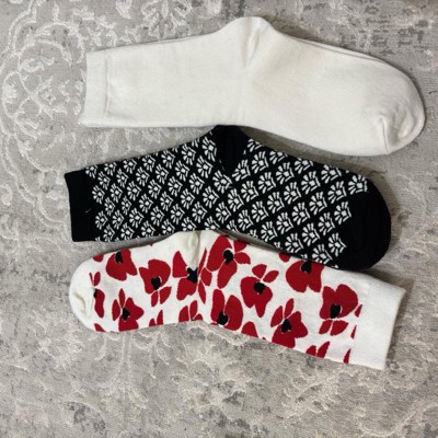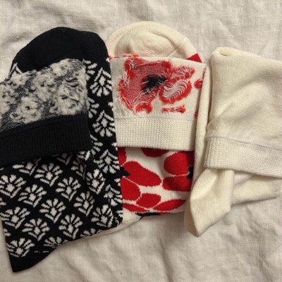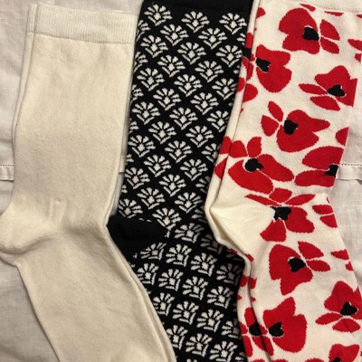 [This review was collected as part of a promotion.] These women’s crew socks are perfect for cold season and I got these from A new Day.The pack comes in 3 pair of socks of black/ivory and red color with modern floral and geometric design.The size I got is 4-10 which is good for my shoe size which is 7.These socks are made with lightweight knit cotton and polyester blend.These are good for my everyday wear to keep my feet warm and cozy.