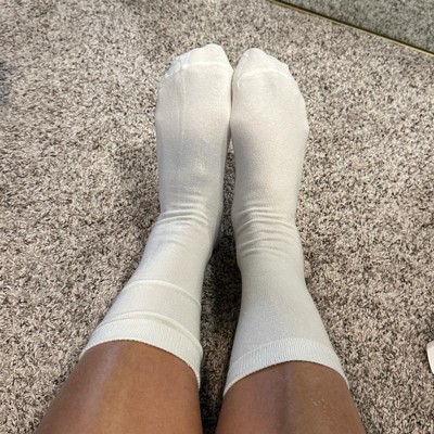 [This review was collected as part of a promotion.] I purchased these socks to wear with holiday outfits. The fit is as expected for the length on the foot. However, the length on the leg is very high. The material on the patterned socks is not super comfortable as there are string strings, and things on the inside due to the pattern. This is uncomfortable for me. The ivory pair of socks does not have that inside as there’s no pattern.