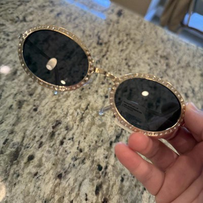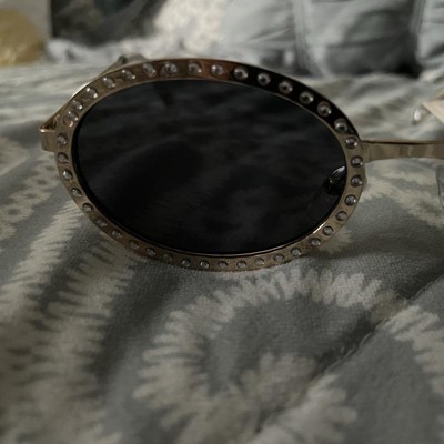 Stay high in style by accessorizing with these Oval Crystal Embellished Frame Sunglasses from A New Day™. These oval sunglasses are embellished with crystals for a gorgeous look. Designed with gold-tone metal frames, these sunglasses feature maximum UV protection lenses to help keep your eyes shielded from the sun. Complete with nose pads, these metal-frame sunglasses offer a medium facial fit.