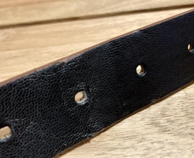 The finish on the belt buckle started to chip during first wear. Belt is also very stiff and showing signs of wear.