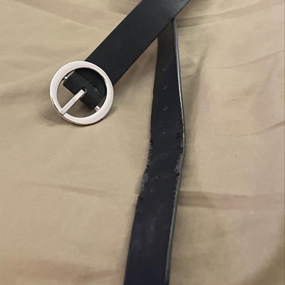 The Oval Tapered Center Bar Reversible Belt from A New Day™ makes a sleek addition to a variety of outfits. The reversible women's belt is black on one side, cognac on the other, giving you an option to fit with virtually any outfit in your closet. The belt has a gold-tone oval tapered center bar to give your look a touch of shine, while multiple holes help you find a great fit. With two color options at hand, this belt will quickly become a go-to to effortlessly accessorize your look.