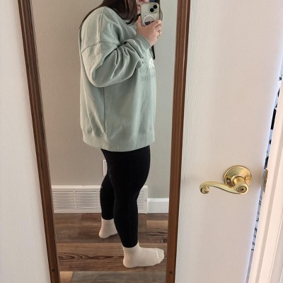 Ordering a sweatshirt online is always risky, it seems! I decided this sweatshirt was so cute it was worth the risk. It arrived today and I am so excited to share my review! The color of the sweatshirt is absolutely gorgeous! It’s like a blue green color and the quality of the fabric is fantastic. It is soft and buttery and the inside of it is an incredibly soft and high-quality fleece material. It is worth twice what I paid for it without question! Usually sweatshirts at this price range are not great quality as far as the material they used, but this one feels more like a $60 sweatshirt. It is a beautifully oversized sweatshirt, so would look cute with leggings, or jeans! If you wanted a more “fitted” sweatshirt order down a size!! I have to add. I am so excited to see the band on the bottom of the sweatshirt is NOT one that is going to hug your body. Thank God someone has finally figured out. No body needs to have a band at the bottom of a sweatshirt to hug them! If companies would just figure that out there would be more happy customers! This sweatshirt the band is not at all restrictive! Hallelujah! I’m heading to the website now to see if there is another pattern/color in this exact sweatshirt because this one is perfection! Bravo!