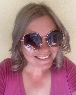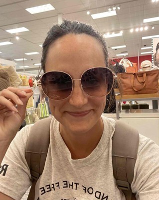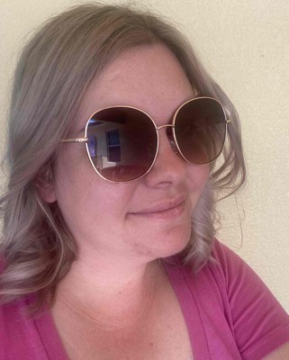 Give your accessory collection a fashionable update with these Oversized Round Metal Sunglasses from A New Day™. These oversized sunglasses feature gold-tone frames in a round design and multicolored lenses for a stylish look that's perfect for your going-out attire. The metal frame sits comfortably on your face while the UV protection helps keep your eyes shielded from the sun, making these glasses a perfect sunny-day companion.