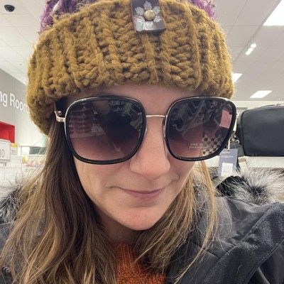 [This review was collected as part of a promotion.] I love these stylish oversized sunglasses on bright sunny winter days! But I am even more excited to wear them out on the lake in the summer! The ear pieces and nose piece fits very comfortably and I think the shape flatters my face which is uncommon of larger sunglasses! I like that the ear pieces are gold because they really pop out. I also really like the square shape! I received an incentive to write this review.