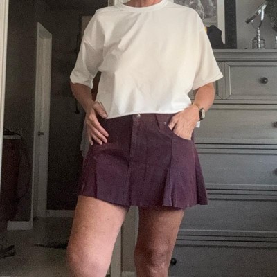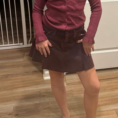 Love the flocked material of the Burgundy version. I purchased my usual Wild Fable skirt size and the fit is perfect. Of course it goes so well with the matching top I had to buy that as well. Definitely recommend this cute and comfy set. It definitely is Micro in length which I'm happy to find at Target.