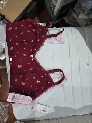 Pointelle triangle bralette from Wild Fable™ with a V-neckline, bow-front accent and lace trimming. Made from cotton fabric with spandex and lining for flexible comfort that moves with you. Features adjustable shoulder straps for a customizable, stay-put fit. Provides light support. Pullover style completes the design with easy on and off.